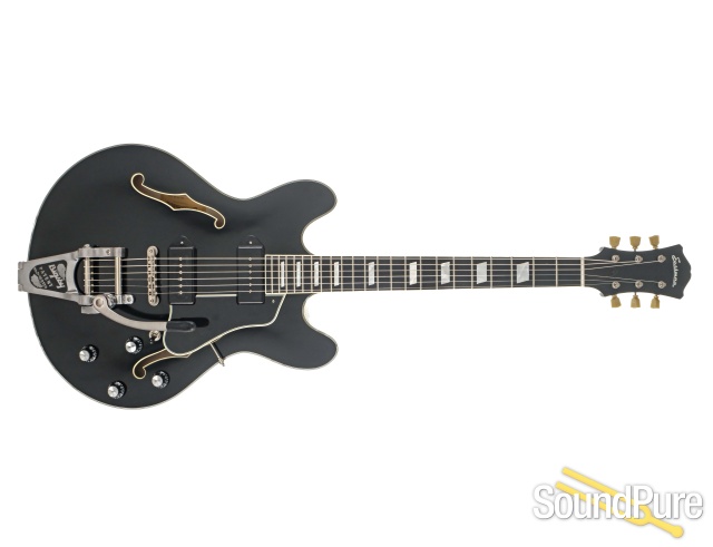 Eastman's Incredible Hollowbody Thinline P90 T64 Guitar with a Sleek, Black Finish!