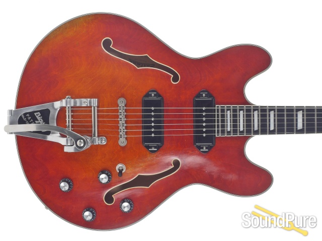 This one almost didn't make it to the site!  A couple folks here (including our luthier) briefly considered schemes to keep this guitar from making it to the public eye but, seeing as it's the first of its kind, we figured y'all ought to have first crack at it.  We have flat out never heard a more resonant thinline from Eastman--the bass response alone is staggering.  The Antiquity P-90s through any tube amp worth its salt are the stuff of dreams.  Rock, Blues, R&B, Jazz, Funk, and more--this is a guitar that gets you excited about playing again!