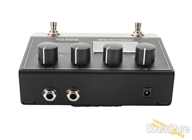 The Echo Fix EF-P2 is a real Spring Reverb pedal that packs a huge sound into a small enclosure. The EF-P2 features a three-spring reverb tank, adjustable Spring Drive, Bass / Treble EQ controls, and Reverb Volume control. With a footswitch for reverb bypass and also a direct signal mute footswitch, the EF-P2 can also be used as an outboard effect in recording studios. The EF-P2 can accept audio signal from synths and other audio devices, not just guitar.