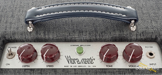 The Vibramatic 13 combo amp. Right from the heart of So. Cal. As the era evolved to the next phase, Echopark Amplification introduces a new relative to the iconic combos of the mid 60's. The classic "club" amps. 13 clean watts featuring a bias modulating output vibrato, a single input for erect tonal palate ranging from a delicate purr to an engorged pulsating groan. The Vibramatic 13 tone, inspiring as it should be! Simply complex.