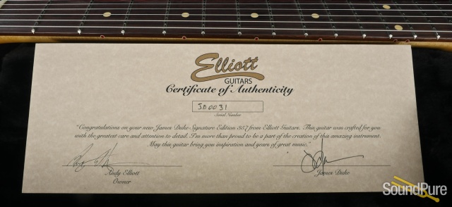 In this video, Sound Pure electric guitar specialist Eddie Berman plays the Elliott James Duke 357 BlackSparkle w/Racing Stripe #JD0031 through an Elliott Veralux 1x12 Combo Amp with a Strymon El Capistan dTape Delay Effect Pedal and a Strymon blueSky Reverberator Reverb Effect Pedal.