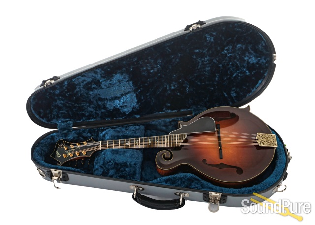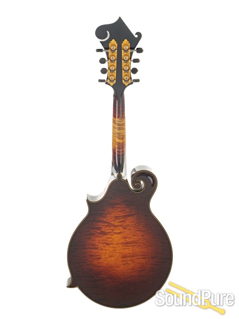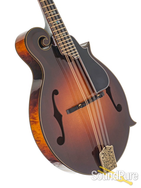 The Ellis F5 Reserve is a breathtaking, heirloom-level mandolin that blends elite tonewoods with unmistakable artistry and performance-ready refinement. Its Adirondack red spruce top delivers huge headroom, crisp clarity, and a powerful chop, while the reserve-grade back and sugar maple sides add shimmer, focus, and dimensional sustain. A flamed sugar maple neck with a fast unfinished speed neck feel and EVO gold frets makes every note effortless, and luxurious details—triple binding, hummingbird inlay, and a hand-engraved gold James tailpiece—set it firmly in collector territory. With a Calton case included, this Ellis is a rare long-term investment built to inspire for decades.