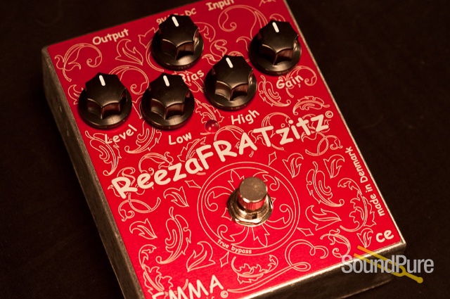 Emma Electronics demos the new Reezafratzitz II overdrive/distortion pedal.