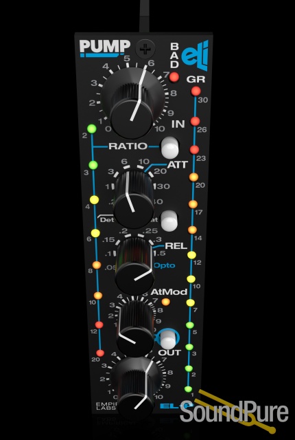The PUMP is a 500-series module compressor that has taken the DNA of the Distressor and distilled it into a single 500 space package at an affordable price. It also borrows features from some other ELI products, like a germanium diode-based saturation circuit similar to the one in the Mike-E and the attack envelope shaping AtMod from the Arousor plugin (that’s right, we took a software feature and turned it into hardware!).