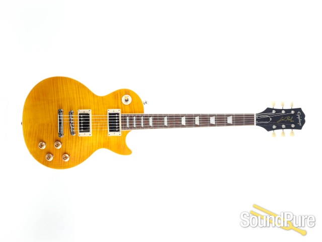 When blues-rock guitar legend Joe Bonamassa found the original "Lazarus," a rare 1959 Gibson Les Paul Standard, it was in poor condition. Like the Lazarus of Biblical texts, Joe's Les Paul guitar was brought back to life. Once it was restored, its stunningly figured top was revealed. Joe Bonamassa is once again collaborating with Epiphone, this time on a guitar inspired by his Gibson Lazarus 1959 Les Paul Standard. Featuring a mahogany body with a maple cap and topped with a wide-grain AAAA flame maple veneer, it's outfitted with Gibson BurstBucker pickups and ’50s style wiring with CTS potentiometers and Mallory capacitors. It comes in a vintage-style case with Bonamassa graphics with a Certificate of Authenticity.