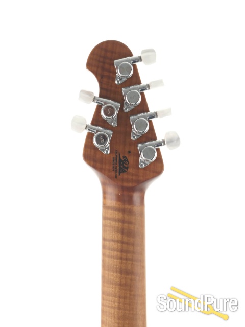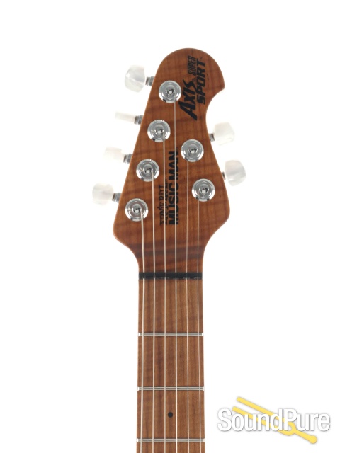 The Axis Super Sport guitar is offered with a roasted, figured maple neck, 22 stainless steel frets, and 2 exciting new finishes: Yucatan Blue and Roasted Amber. The Super Sport retains all the classic features, including the ever-comfortable asymmetric neck shape, proprietary Ernie Ball Music Man vintage tremolo with locking Schaller tuners, 5-way switch, volume/tone controls, and custom DiMarzio humbuckers. Available with your choice of flame or quilt maple top over a basswood body, this tonewood/pickup combination is a perfect recipe for hard edge rock tones but also delivers a subtle dynamic response at lower volume levels when needed.