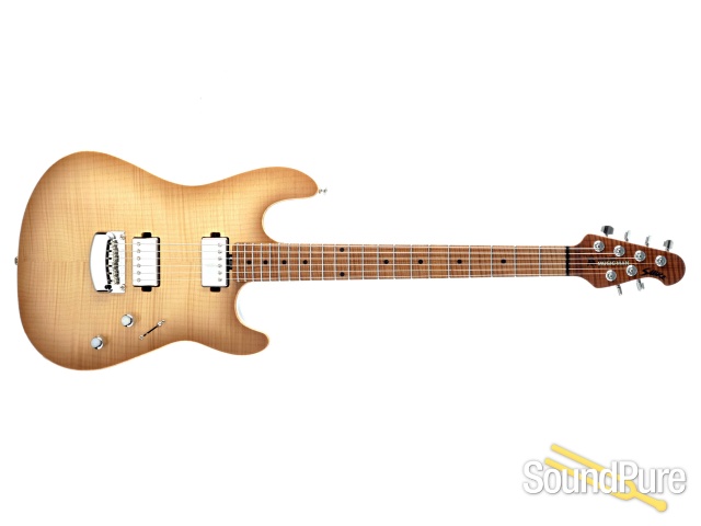 This thing rips! The satin finish on the gorgeous figured maple neck makes gliding around the fretboard a breeze, and the Okoume body resonates balanced and bright! As usual for Ernie Ball, they've created a modern wonder of a guitar with playability at the forefront of their minds.