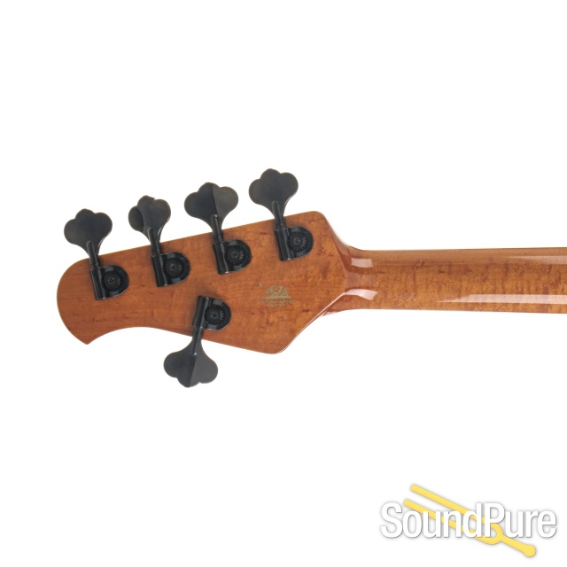 In 1987 Ernie Ball Music Man created the legendary StingRay 5 bass, setting the standard for the modern 5-string bass. The 35th Anniversary edition honors the timeless Ernie Ball Music Man design that has been used by some of the world’s most iconic bassists. The ash body features a spalted maple top with thin maple veneer and comes standard with a Spalted Sunburst finish. The roasted figured maple neck features an ebony fretboard, copper pearlescent block inlays and is finished in a high gloss for superb comfort and playability. High-output neodymium StingRay 5 pickups provide powerful low-end with a distinctive mid-range punch while the lightweight hardware delivers solid stability. Limited to 225 single-humbucker and 25 dual-humbucker models, every Anniversary StingRay 5 includes a certificate of authenticity.