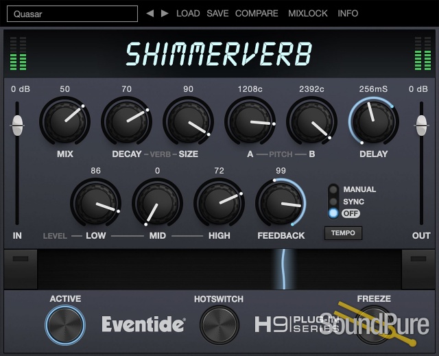 ShimmerVerb also boasts a HOTSWITCH for calling up another state of parameters inside the same preset. Change octaves, turn off/on the pitch shifters, or simply turn the Mix up or down while crafting your performance. FREEZE allows you to make smeared textures out of single voices, full pads, or percussive elements resulting in metallic “shimmers.”