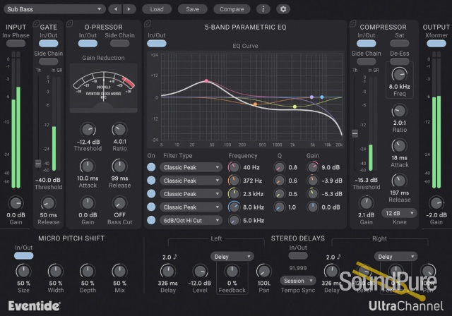 UltraChannel shines in carving out space for any instrument or vocal to sit just right in the mix. There is an infinite number of ways to generate the exact tone, dynamics, and frequency characteristics you’re seeking. Additionally, through its support for side-chaining, you can use an alternative audio source to color the characteristics of your main signal. It wouldn’t be an Eventide if it didn’t also feature micro pitch functionality (from our flagship H9000 hardware) to thicken or increase the stereo spread of any instrument or vocal.