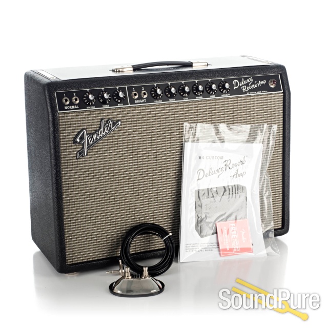 Played on countless hit recordings, the mid-'60s Deluxe Reverb is a timeless Fender classic and one of the most indispensable workhorse guitar amps ever made. Moderately powered and producing a full, snappy and crystalline tone, the pedal-friendly '64 Custom Deluxe Reverb carries on that legacy with incredible vintage-style tones, thanks to its modified all-tube hand-wired AB763 circuitry. Featuring Bright and Normal channels, tube-driven spring reverb and tremolo on both channels, and 20 watts of output power, this is the go-to amp for warm, clean tones and moderate breakup.