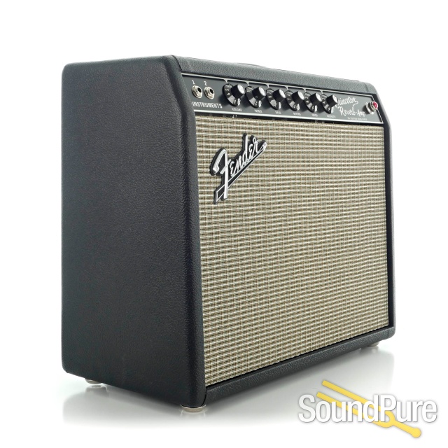 Premium features include: Hand-wired AA764 circuit with tube-driven spring reverb and tremolo, Fender Vintage Blue tone capacitors, Three 12AX7 and one 12AT7 preamp tubes, 5AR4/GZ34 rectifier tube, Matched pair of 6V6 power tubes, 12 watts output power, 10” Jensen® alnico P10-R speaker for sparkling clean tones and moderate breakup, Solid pine cabinet for resonance and lighter weight, Extra-heavy textured vinyl covering, Lightly aged silver grille cloth, Footswitch and amp cover included.