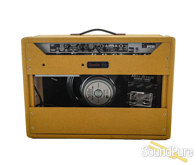 Iconic Fender Sound via a Sweet Jensen Speaker and a pair of 6V6 Tubes that can do it all, wrapped in Lacquered Tweed!