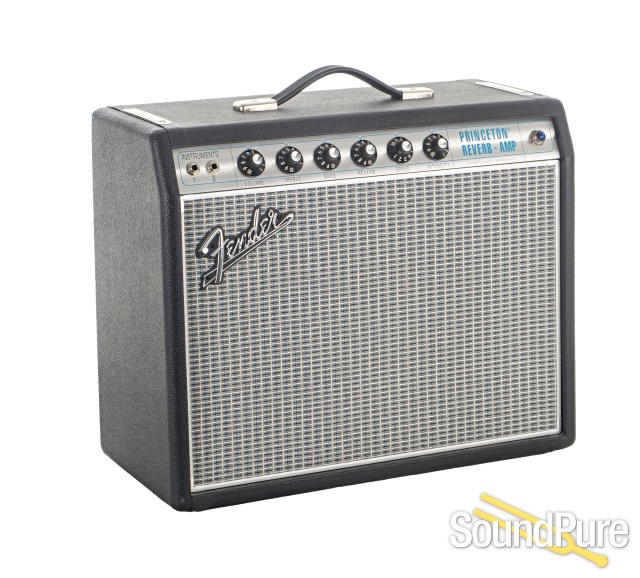 1968 was a transitional year for Fender amps, with tone that was still pure Fender but a look that was brand new. With a silver-and-turquoise front panel and classy aluminum "drip edge" grille cloth trim, the Princeton Reverb received a fresh new face as it remained the perfect recording and gigging amp. Small, light and moderately powered, it produced big tube tone, with world-class Fender reverb and vibrato effects. For countless guitarists ever since, the Princeton Reverb has been the go-to amp for classic Fender sound.