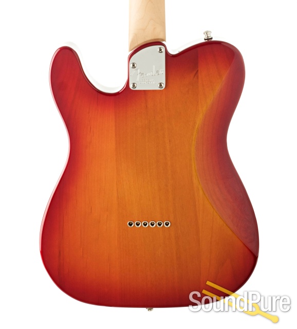 This Tele is in great shape! All the convenience and consistency of the American Elite series in a beautiful cherry burst. Extremely quick neck and low action lets me wander around the neck with confidence and clarity, sure that every note will sound marvelous!