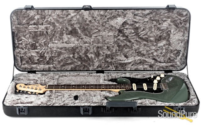 A great American Pro Strat with an Antique Olive Finish and three single coil pickups.