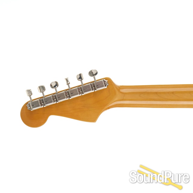 During the late '50s and early '60s, the popularity of Fender musical instruments flourished, and although the Fender assortment had expanded to include many great new instruments, the Stratocaster® reigned supreme. By 1961, the Stratocaster had taken on a more refined aesthetic, with a 3-Color Sunburst reformulated with a more vibrant red and bolder black edge, topped with a 3-ply pickguard accenting the Strat's signature curves.