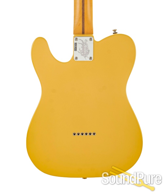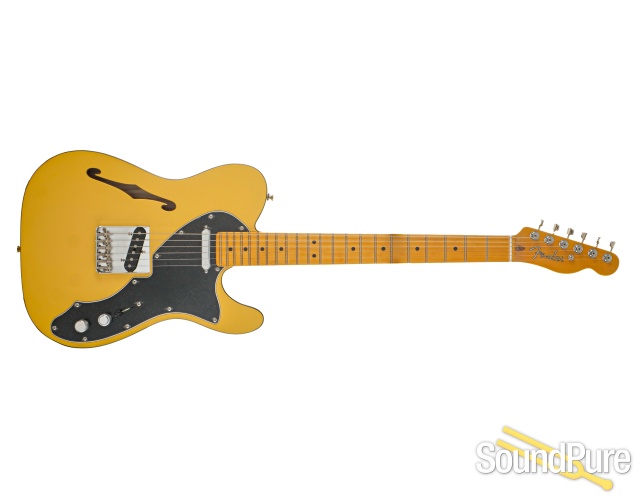 Discover the brilliant Britt Daniel Telecaster Thinline in striking Amarillo Gold! This isn't just an instrument; it's a sound investment in your musical future and a stunning piece of craftsmanship from the Fender Artist Signature Series. The resonant ash body, paired with a fast maple neck featuring the comfortable Deep "C" profile, delivers an truly exceptional playing experience. Feel the vintage bite and sonic shimmer from the Custom Shop hand-wound Tele® pickups, giving you a pure, powerful punch! Every detail, from the vibrant Gloss Lacquer finish to the stable Fender® ClassicGear™ tuning machines, ensures this guitar is perfectly playable and an absolutely rock-solid instrument.