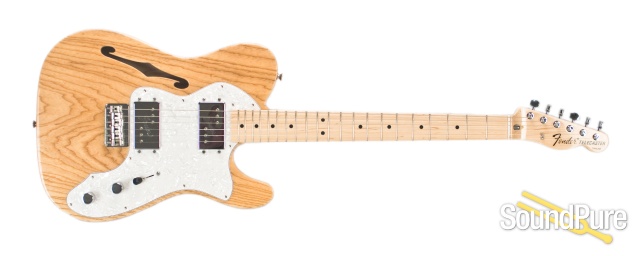 The Fender '72 Telecaster Thinline Electric Guitar is a classic. 1972 took the Tele into new zones, giving it dual humbuckers for a meatier sound, and a new pickguard design for an updated look. This reissue is authentic in every detail: semi-hollow ash body, 7.25" radius fingerboard, die-cast machine heads, nickel silver frets and a 6-saddle string-thru-body bridge. Also features a single f-hole accent, humbucking pickups, and a white shell pickguard.