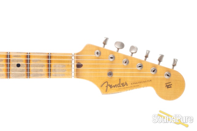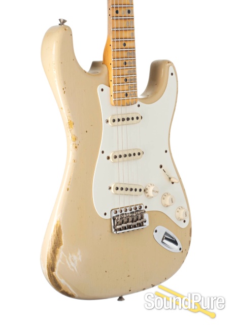 A perfect neck shape and wonderfully lightweight ash body (under 7 lbs!) make this '56 Stratocaster Relic a winner right out of the gate. The body resonates beautifully and is so loud and responsive (even unplugged) that you can feel every note ringing through the body and the neck. We love the Desert Sand finish and don't see it very often, so snap this one up before it's gone!