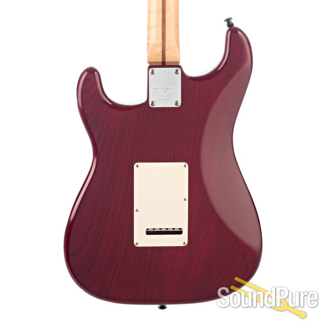 Issuing from Fender's "Custom Classic" series, this Ash strat sports a very comely transparent "Bing Cherry" finish, and a delicately figured Birdseye Maple neck! And as always, these deluxe appointments adorn a deluxe guitar. With a premium ash body and Custom Shop hardware and pickups, this strat looks as good as it feels and sounds!