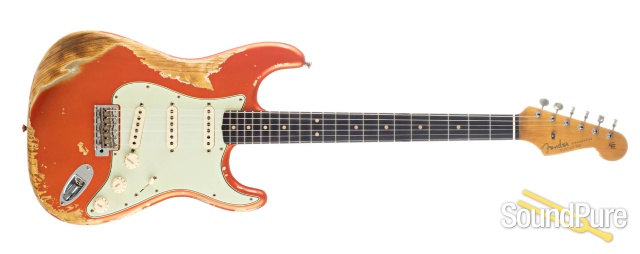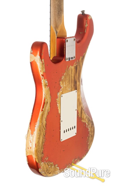 A beautifully aged Super Heavy Relic 2019 Custom Shop Strat in candy tangerine.