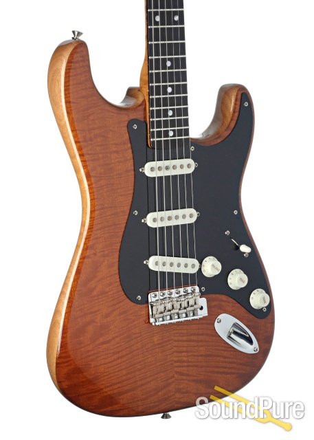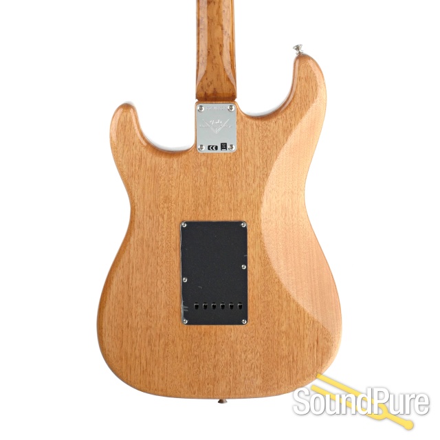 Classy and steeped in tradition, the Artisan Figured Mahogany Stratocaster exemplifies all you would expect in playability and tone from the Fender Custom Shop. Stunning in looks and performance, the Artisan Figured Mahogany Stratocaster exhibits a roasted okume body topped with a warm-sounding figured mahogany top. Complete with a 3A roasted birdseye maple neck, an African blackwood fingerboard and a set of hot, hand-wound Ancho Poblano pickups, the Artisan Figured Mahogany Stratocaster is an unapologetic gift to the visual and auditory senses.
