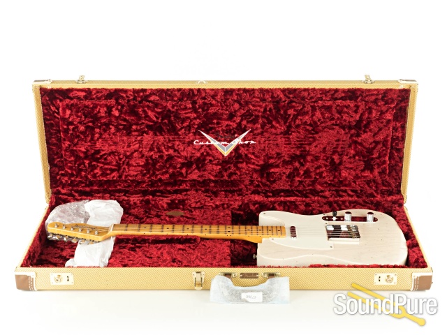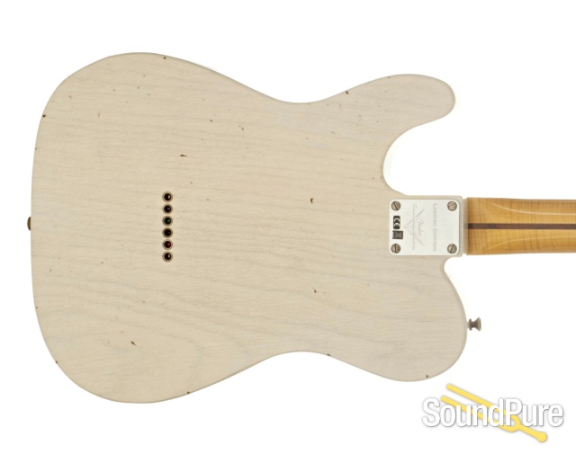 Other features include a NOS flash-coat lacquer Nocaster Blonde finish, Closet Classic hardware, 2-piece off-center-seam ash body, tinted maple rift-sawn neck with 10/56 "V"-shaped neck profile, 21 medium vintage frets, 3-way switch, black phenolic pickguard, '51-'54 Tele bridge with brass saddles, bone nut, round string tree and vintage-style tuning machines.