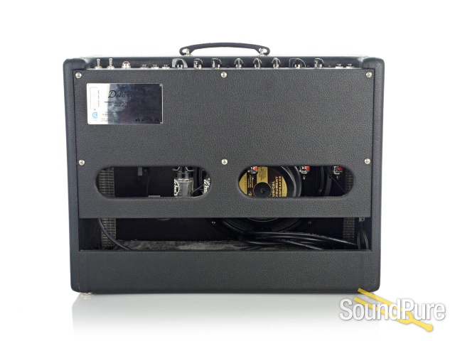 Awe inspiring Fender tone issues forth from a 12” 8-ohm Fender Special Design Eminence speaker fueled by a pair of 6L6 Groove Tube output tubes and three 12AX7 preamp tubes. You get three channels—"normal," "drive: and "more drive"—with gain and master controls for the "drive" channel and a "bright" switch for the "normal" channel. Other features include FX loop, Fender long-spring reverb, external speaker jack, internal variable bias control, two-button three-function channel footswitch, chrome panel with vintage pointer knobs, black textured vinyl covering and silver grille cloth.