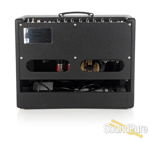 Awe inspiring Fender tone issues forth from a 12” 8-ohm Fender Special Design Eminence speaker fueled by a pair of 6L6 Groove Tube output tubes and three 12AX7 preamp tubes. You get three channels—"normal," "drive: and "more drive"—with gain and master controls for the "drive" channel and a "bright" switch for the "normal" channel. Other features include FX loop, Fender long-spring reverb, external speaker jack, internal variable bias control, two-button three-function channel footswitch, chrome panel with vintage pointer knobs, black textured vinyl covering and silver grille cloth.