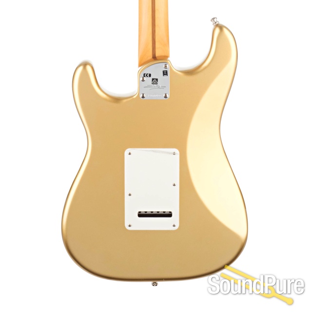 Soulful and dynamic, Lincoln Brewster’s playing style has inspired and uplifted countless fans over the course of his 25-year career. With an ash body and striking Aztec Gold lacquer finish, the Lincoln Brewster Stratocaster is a true modern classic, combining timeless body contours and a vintage neck shape with updated features like a compound-radius fingerboard, 2-point tremolo with bent-steel saddles and pop-in arm. A trio of single-coil pickups — two DiMarzio® Area 58™ pickups in the neck and middle positions, and a DiMarzio Area 61™ at the bridge — offer vintage tones with zero hum. The “Soft V” maple neck with nitrocellulose lacquer finish and the maple fingerboard’s 22 medium-jumbo frets are built for speed and comfort. An onboard active boost, activated via the push/pull volume control, and custom mid-boost, controlled by the Tone 1 knob, give this guitar extra power and focus for any musical situation. This feature-rich guitar also has classic aesthetic touches like chrome hardware, aged white plastic knobs, a 1-ply Eggshell pickguard and vintage-style locking tuners.