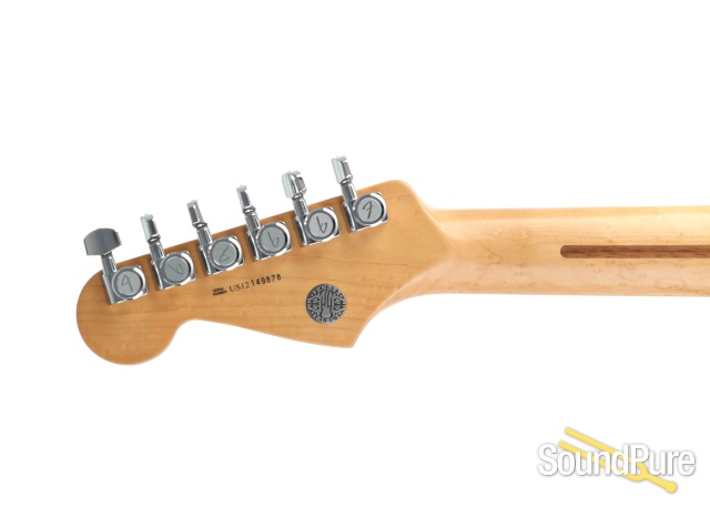 The Fender Select Stratocaster HSS takes the refined elegance of its triple-single-coil brother and amps it up through the roof with the extra power of a humbucking bridge pickup. Features include a striking Antique Burst gloss-lacquer finish on a sleek flame maple-top body. Its modern "C" shaped birdseye maple neck has a comfortable contoured heel, Bi-Flex™ truss rod system for rock-solid stability, a satin lacquer finish and rear-headstock "Fender Select" medallion. The smooth-playing compound radius rosewood fretboard (9.5"-14") has 22 medium jumbo frets and stylish white pearloid position inlays. Full-throated sound roars from the Fender Select Stratocaster humbucking bridge pickup, with singing tone from new Fender Select Stratocaster single-coil neck and middle pickups, all with five-way switching.