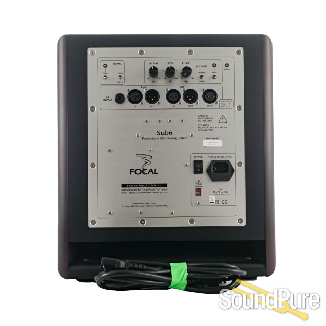 Sub6 has been developed for optimum acoustic coupling with Focal loudspeakers. It features a wide range of adjustments, including a stereo high-pass crossover (75 Hz - 100 Hz) dedicated to left and right speakers, a configurable low-pass filter with mono summation, a phase inverter, an adjustable phase, and a MUTE switch. A wealth of connectors allows 2.1, 2.2 and multichannel use via L/R inputs and outputs and LFE input.