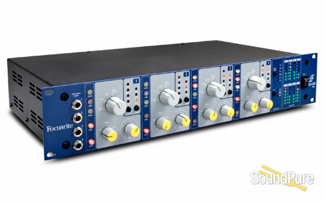 Four instrument inputs, instantly accessible on the front panel, allow quick and easy connection without the need for a separate DI box. Extra processing can be placed between preamp and conversion via the units dedicated insert points, featured on every channel. Finally, accurate six-segment LED metering is designed to catch even the fastest transients on every channel.