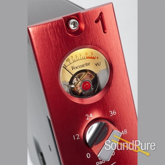 The unique Focusrite mic preamp topology provides superb common mode rejection, excellent overload margin and, with its shared gain structure, (14dB from the transformer and up to 46dB from the amplifier) a very low noise floor, combined with the traditional wide bandwidth of the original Red series (10Hz to 140kHz). This exceptional level of performance is maintained over a wide range of impedances applied to the input, making the Red 1 500 suitable for almost any microphone – ribbon, dynamic or condenser.