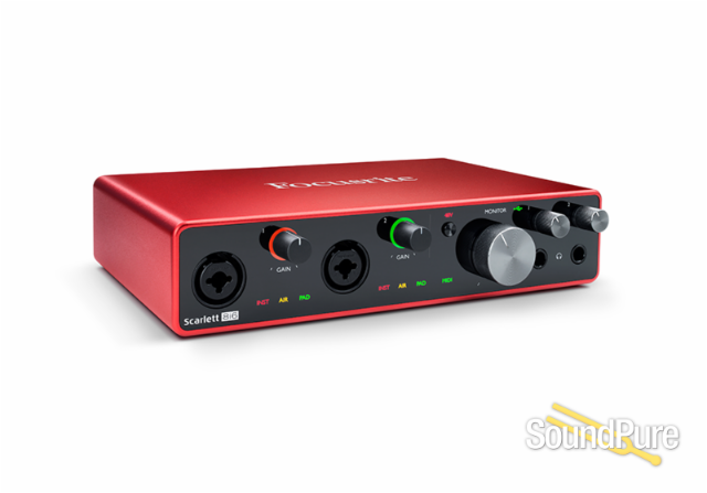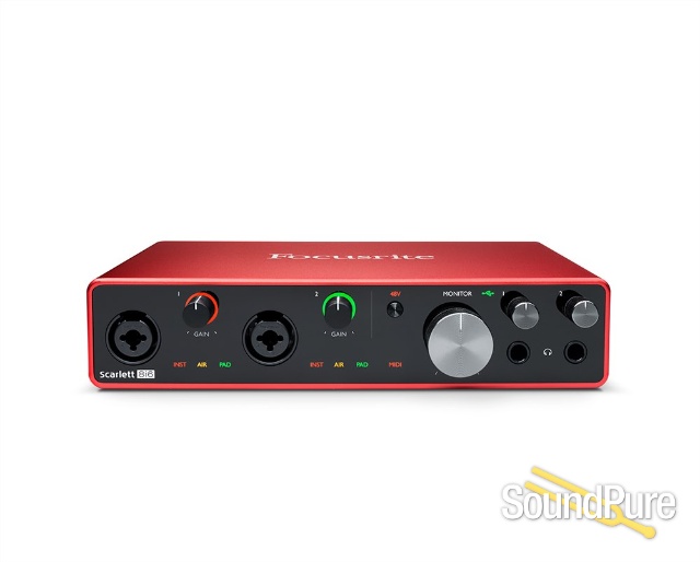 8i6 provides two of Focusrite's best-ever-performing third-generation Scarlett mic preamps: with optional Air setting to reproduce the Air effect of their original ISA mic preamp, giving your vocal or acoustic recordings a brighter and more open sound.