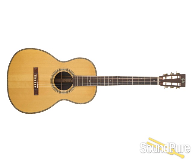 Discover the exceptional Foley OO-28, a flawless 12-fret instrument crafted from stunning Adirondack Red Spruce and magnificent Quarter Sawn Brazilian Rosewood—a true acoustic investment! This guitar boasts classic Herringbone trim, elegant Tiger Maple binding, and delicate Snowflake inlays set into a rich Brazilian Rosewood fingerboard. Its comfortable, slight V-shaped neck and 1 11/16" bone nut ensure supremely playable action. The slot headstock and carved valute complete its vintage aesthetic. Tuned to perfection and built to be rock-solid, this is an absolutely remarkable and unique specimen that sings with unparalleled tone! Secure your dream guitar today.