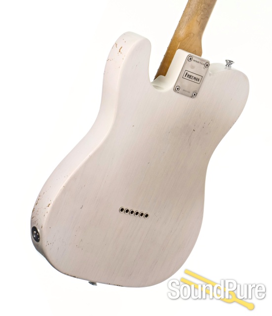 Discover the unparalleled craftsmanship of this Friedman Vintage-T Classic, a true player's guitar meticulously crafted for both tone and tactile delight! This aged beauty, with its smooth maple fretboard and a comfortable C-shaped neck, feels like an old friend from the very first strum. Weighing in at a perfect 7lbs, 2oz, its alder body resonates with a rich, classic tone, captured beautifully by Friedman's own Classic Single Coil T pickups. Expertly set up by our luthier, this rock-solid instrument has been leveled, crowned, and polished to ensure flawless playability and a supremely comfortable feel. The upgraded Mastery Tele bridge adds superb tuning stability and sustain, making this not just a guitar, but a fantastic investment in a unique, road-ready companion!
