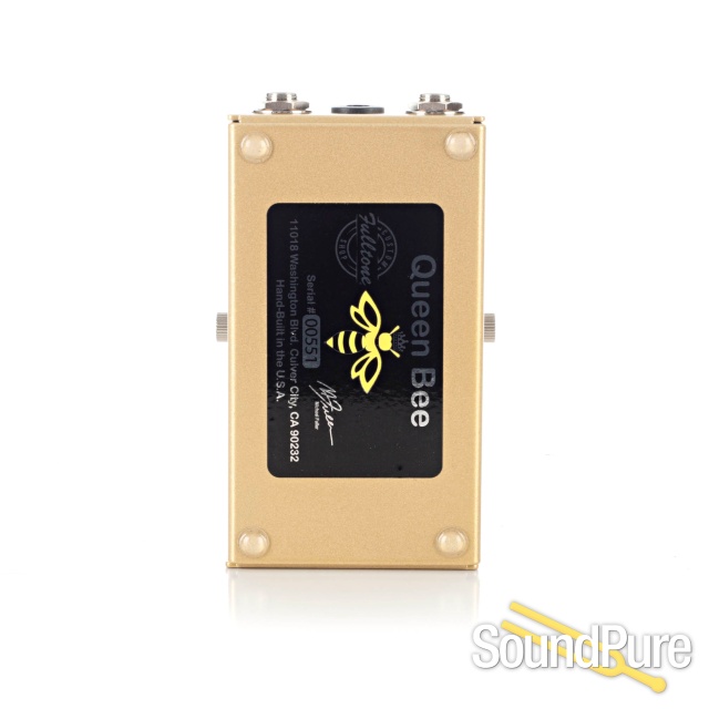 As with most Fulltone pedals, the Queen Bee has True-Bypass switching via the Fulltone 3PDT footswitch for maximum signal integrity while the pedal is bypassed. Because the Bee utilizes Germanium transistors it should only be powered with the (included) battery or a “Center Positive,” well-regulated power supply. Do not “daisy-chain” multiple pedals on a single wall wart adapter as this may damage the pedal. Instead the Queen Bee should be connected to its own outlet on a professional-grade power supply that has regulated, isolated/discrete outputs, in addition a reversed power cable must be used. Fulltone Queen Bees are 100% Hand-Built in the USA.