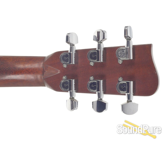 This Gallagher has seen its share of honest playing over the 18 years it's been around. After some impeccable fretwork from our luthier, it's ready for 180 more! You just couldn't ask for a more honest, down to earth traditional dread sound. The medium-ish V neck offers the left hand enough to dig into without slowing you down. Tonally, you've got sweet, bright highs, an authoritative, focused bass, and surprisingly present mids for a Rosewood dread. Flatpicking, lead or rhythm, just sounds like the real deal. Fingerpickin', too, if you've got the right hand for it!