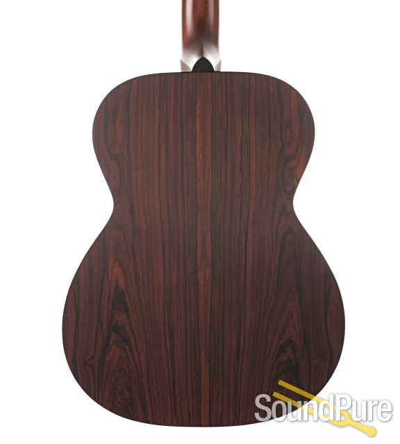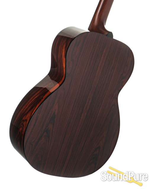 This is an incredible acoustic with a sound that's bigger than your typical OM! The Engelmann Spruce makes for a richer midrange than other types of Spruce, and Cocobolo makes for a sparkly yet deep sound with lots of reverb and snap - a lot of sonic pallette for the ears to digest! The craftsmanship on this piece is impeccable throughout and this is really an incredible acoustic with a sound that is perhaps a little more out there, and it looks absolutely gorgeous too! Don't miss this one!