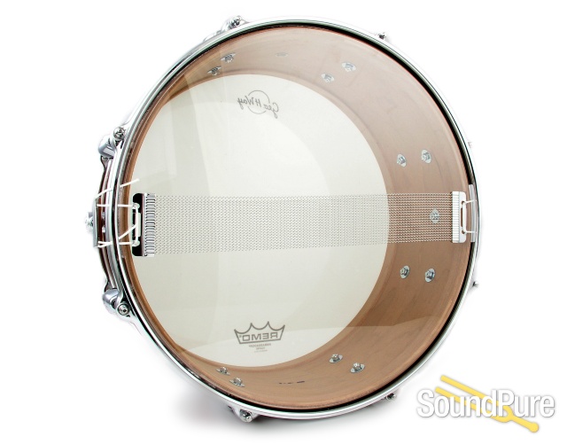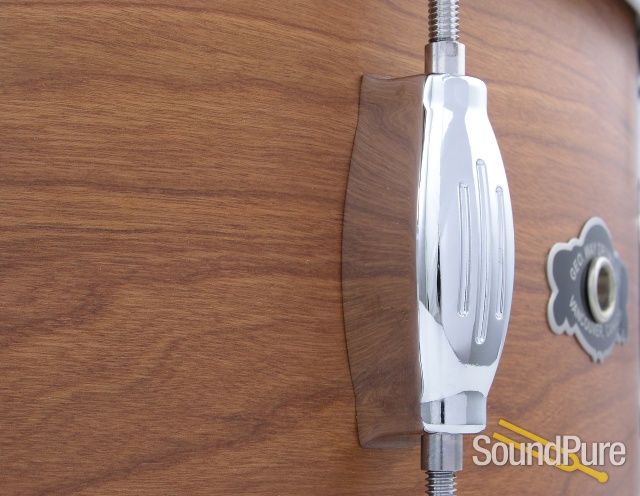 The George Way 6.5x14 Tradition Snare Drum with Cherry Shell features the same shell architecture as the Studio model with one exception - the shells are entirely made from Cherry. This snare drum comes with streamline casings and a 845 snare throw off requires no snare wire tension, you actually use the butt end as a tension adjustment for the snares. The Tradition sports a George Way limited edition minted badge with an art deco-looking cloud shape that contains the snare’s single air vent in its center. It also comes standard with eight single-piece lugs that are an original George Way design. This snare is available for SoundPure's Try-Before-You-Buy Program, so if you want to hear how its sounds in your hands, shoot us an email at Drums@SoundPure.com or call us anytime at 919.682.5552. Thanks for watching!