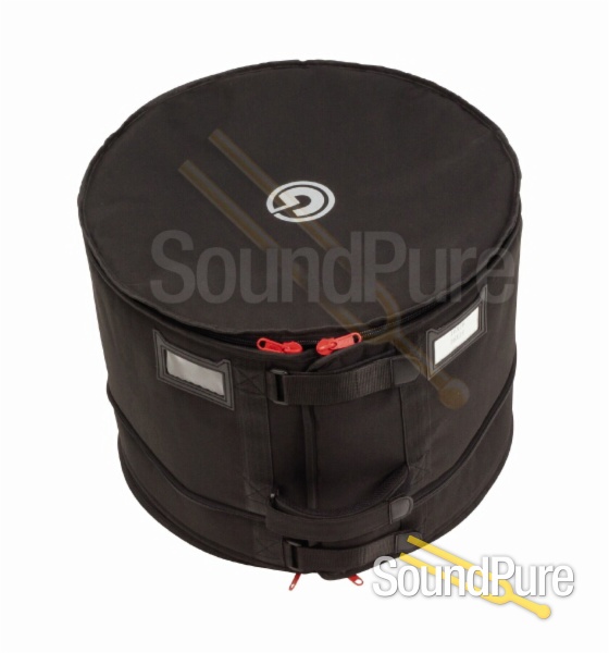 Ahead Armor Cases begin with their unique shape. Featuring Revolution’s patented TruForm™ design, the shape of each case corresponds to the “true” shape of the drum plus its mounting hardware. The universal teardrop design allows for a much snugger drum fit. It also allows dealers to reduce their inventory by eliminating the need to double-stock separate bags for tom-toms with and without suspension mounts and bass drums with and without tom mounts. Secondly, the patented DynaZip™ zipping system makes it easier to take the drums in and out of the cases by combining an ingenious cutaway design with a zipper that travels along the diameter of the case as well as down both sides of the cutout. Finally, the Armor Cases incorporate AHEAD’s exclusive DX-Core™. The drum-hugging DX-Core™ provides the security of two layers of high-impact foam padding plus the softness of premium-grade Sherpa Fleece lining. This significantly increases both the shock-absorption of the bags and the protection of the drums. The plush interior is complemented by the strength and durability of a virtually indestructible, weather-resistant, water-proof, double-stitched, 600-denier, polyester fabric exterior. Ahead Armor Cases are available in an extensive variety of sizes. Measurements are depth x diameter