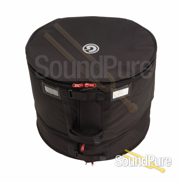 Ahead Armor Cases begin with their unique shape. Featuring Revolution’s patented TruForm™ design, the shape of each case corresponds to the “true” shape of the drum plus its mounting hardware. The universal teardrop design allows for a much snugger drum fit. It also allows dealers to reduce their inventory by eliminating the need to double-stock separate bags for tom-toms with and without suspension mounts and bass drums with and without tom mounts. Secondly, the patented DynaZip™ zipping system makes it easier to take the drums in and out of the cases by combining an ingenious cutaway design with a zipper that travels along the diameter of the case as well as down both sides of the cutout. Finally, the Armor Cases incorporate AHEAD’s exclusive DX-Core™. The drum-hugging DX-Core™ provides the security of two layers of high-impact foam padding plus the softness of premium-grade Sherpa Fleece lining. This significantly increases both the shock-absorption of the bags and the protection of the drums. The plush interior is complemented by the strength and durability of a virtually indestructible, weather-resistant, water-proof, double-stitched, 600-denier, polyester fabric exterior. Ahead Armor Cases are available in an extensive variety of sizes. Measurements are depth x diameter