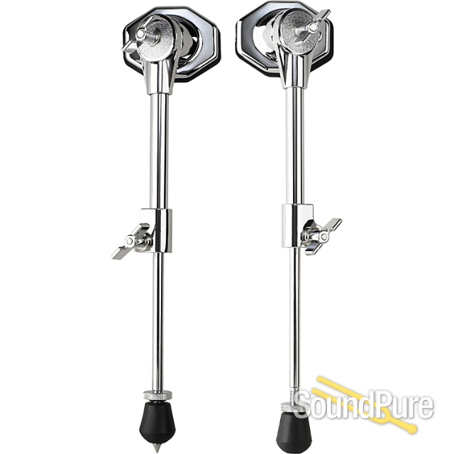 Telescopic bass drum spurs with angle-adjustable mount. (pair) Spur length up to 14”, 4 hole mount, 1.5” x 1.75” x 2.5”