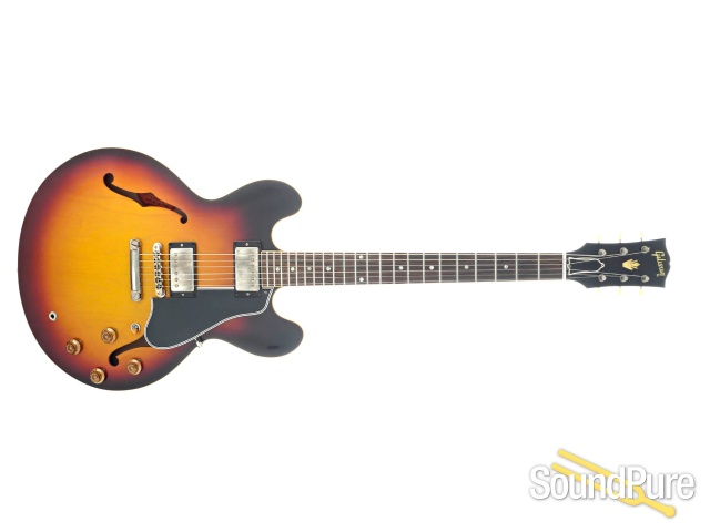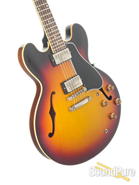 The Historic Reissue ES-335 is back and better than ever thanks to a year of studying, scanning, and listening to original examples. The expert craftspeople at Gibson Custom Shop have rendered every contour, profile, inlay and color of the priceless vintage models in magnificent detail. The result is a playing and ownership experience that will keep you coming back for more. The 1959 Reissue models feature rounded cutaways, Medium C-shape neck profiles scanned from originals, dot inlays and vintage-replica parts.