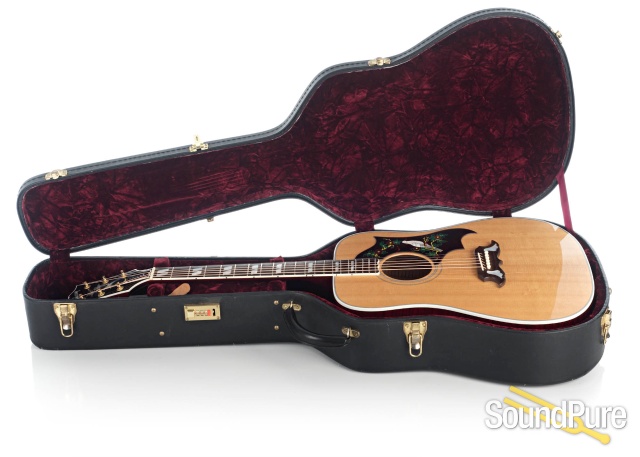 #6 of only 250 produced! Featuring highly figured maple back and sides, a premium spruce top and beautiful inlaywork, this limited edition Doves in Flight is truely unique. The super-slim nut width makes this guitar an absolute dream for strummers and fingerstyle players alike. The tone is bright and clear with balanced midrange and treble and a subdued bass that'll leave you pleasantly surprised coming from this deluxe dreadnought!