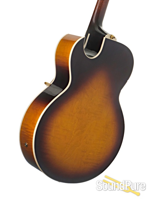 The Gibson Custom Shop L-4 is a classic hollowbody that delivers warm, rich tone with smooth, articulate response. Its mahogany construction provides a deep, resonant voice with rounded lows and clear, woody mids, while the humbuckers add fullness and clarity across a wide range of styles. The fully hollow design enhances its openness and natural projection, making it especially expressive for jazz and clean playing. A comfortable mahogany neck and rosewood fingerboard offer an easy, relaxed feel across all 20 frets. Finished in a traditional sunburst gloss, it carries a timeless, elegant look. Warm, refined, and deeply musical, this L-4 offers a voice that feels smooth and expressive in every note!