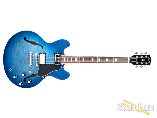 The Gibson ES-335 Figured is the perfect blend of form and function. Equipped with a thermally engineered chambered maple centerblock, and thermally engineered quarter-sawn Adirondack spruce bracing, players will be impressed by the lightweight feel and expanded range of tonal capabilities. Dressed in high-end appointments like our hand-wired Memphis Tone Circuit Premiere (MTC Premiere) control assembly, the all new Memphis Historic Spec II (MHS II) humbucking pickups, and an ABR-1 bridge with titanium saddles, this just might be the best one yet. Gorgeous AAA figured maple veneers are available in Blueberry Burst and Sunset Burst.