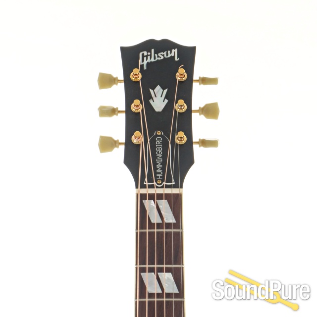 The rich, warm tone of this Gibson Hummingbird acoustic guitar is an investment into your musical future, promising to be a steadfast partner for songwriting and stage alike! With its classic Sitka spruce top and Mahogany back and sides, this instrument delivers a resonant, full-bodied sound that has defined countless hit records. The sleek Satin Nitrocellulose Lacquer finish feels fantastic, and the Rosewood fingerboard with striking Mother-of-pearl Parallelogram inlays offers a supremely comfortable and fast playing experience thanks to the classic Round profile neck. Plug in and play live with confidence, as the onboard LR Baggs VTC pickup system captures every nuance. This legendary, solid instrument is simply spectacular!
